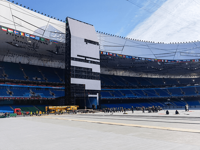 “冰瀑”設施高約60米,用鋼量1000多噸,由6000多根構(gòu)件組成。作為基礎的結(jié)構(gòu)裝置,后期集成系統(tǒng)、升降系統(tǒng)包括LED顯示屏等系統(tǒng),都需要在此裝置上進行安裝,因此對于鋼結(jié)構(gòu)構(gòu)件焊縫和安裝誤差要求極為苛刻,要求穿孔率百分之百,誤差要求控制在2mm,最終我們把誤差控制在了1.5mm,用37天按時完成了加工與安裝工作,該設施在冬奧會開幕式上震驚了全世界數(shù)千萬的觀眾。