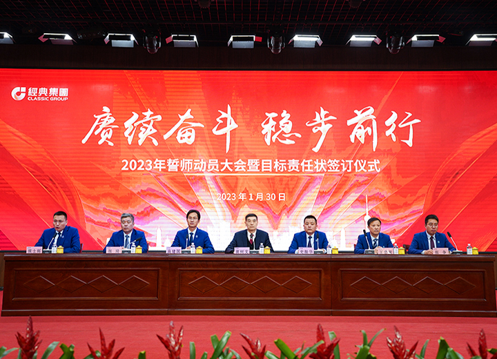 賡續(xù)奮斗 穩(wěn)步前行 經典集團2023年誓師動員大會暨目標責任狀簽訂儀式召開。