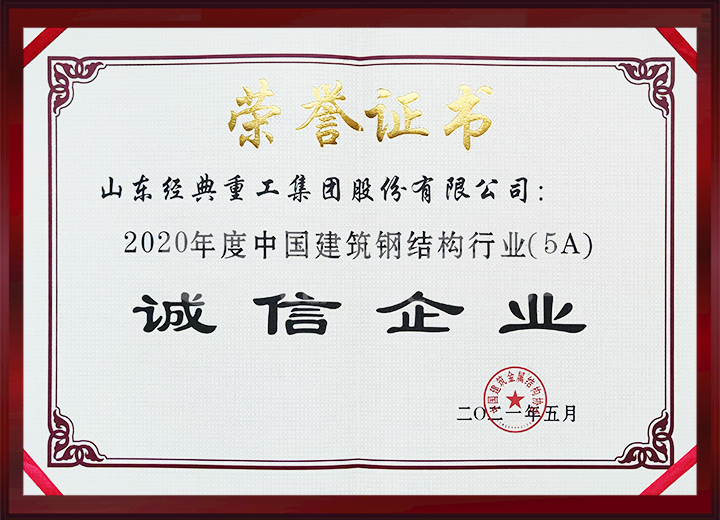 中國建筑金屬結構協(xié)會通報2020年度建筑鋼結構行業(yè)競爭力50強企業(yè),公司位列17位;榮獲2020年度中國建筑鋼結構行業(yè)(5A)誠信企業(yè)。