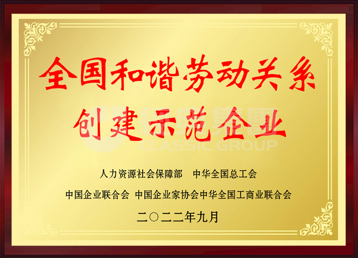 經典集團入選全國和諧勞動關系創(chuàng)建示范企業(yè)。