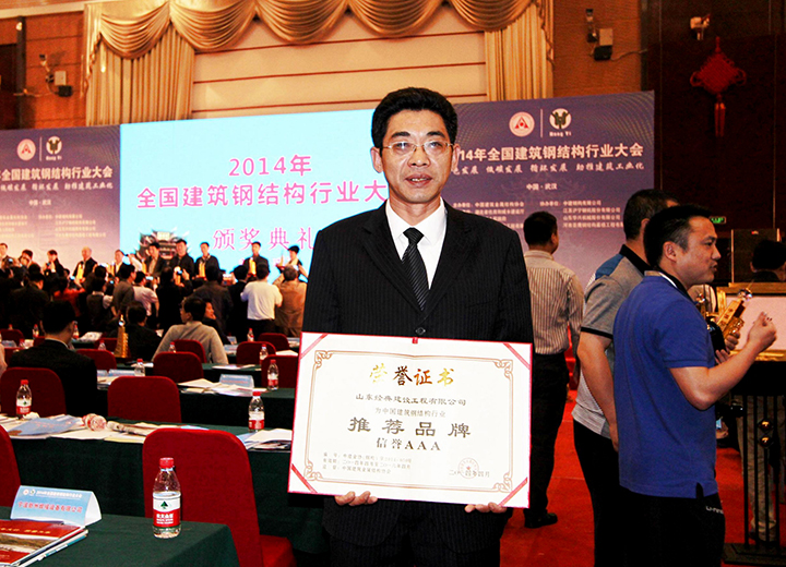 參加中國鋼結構協(xié)會成立三十周年紀念大會當選常務理事單位,榮獲首批全國鋼結構行業(yè)AAA級信用企業(yè)、中國鋼結構行業(yè)杰出貢獻人物、2014年度鋼結構杰出人才獎。