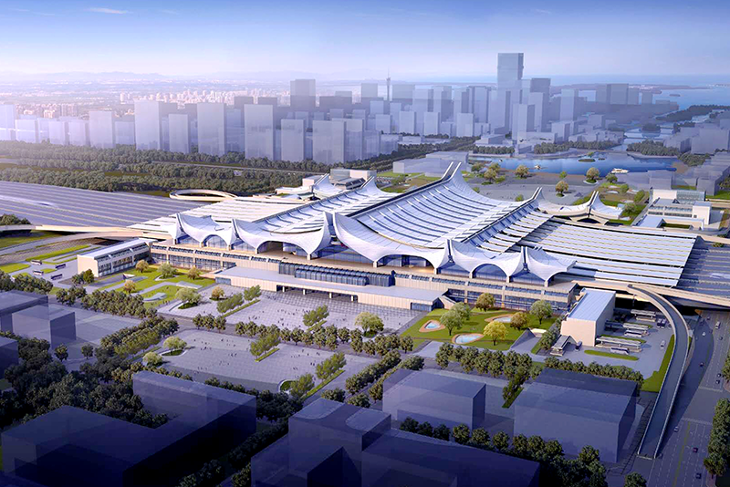 青島紅島站站房設(shè)計(jì)為“一大兩小、中間大兩邊小”的浪花造型,主體為鋼筋混凝土混合框架結(jié)構(gòu),屋面結(jié)構(gòu)為雙向鋼桁架結(jié)構(gòu),落客平臺(tái)單向預(yù)應(yīng)力鋼筋混凝土梁板結(jié)構(gòu),站臺(tái)雨棚為無(wú)站臺(tái)柱大跨鋼框架結(jié)構(gòu)。 總用鋼量將達(dá)4.2萬(wàn)噸,最大鋼結(jié)構(gòu)跨度長(zhǎng)約62米,通過(guò)分段拼裝完成。