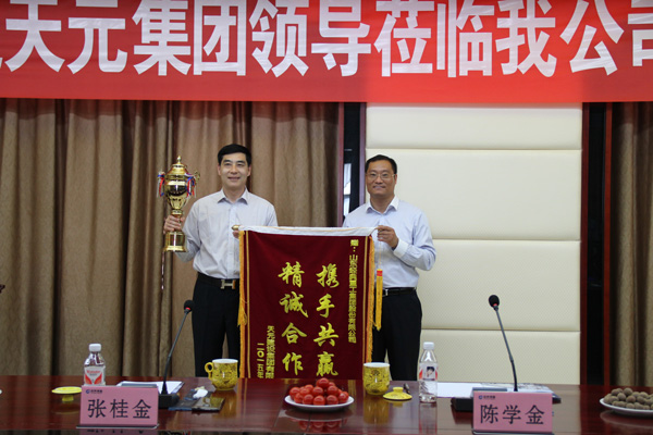 隨后在集團(tuán)會(huì)議中心召開了交流洽談會(huì)。苗樹文董事長(zhǎng)代表經(jīng)典集團(tuán)對(duì)張桂金董事長(zhǎng)一行的到來(lái)表示熱烈歡迎。張桂金董事長(zhǎng)對(duì)經(jīng)典集團(tuán)在青島港等工程項(xiàng)目上付出的努力和大力支持表示衷心感謝,把印有“精誠(chéng)合作 攜手共贏”的錦旗和“最佳誠(chéng)信合作伙伴”的獎(jiǎng)杯交到苗樹文董事長(zhǎng)手中。天元集團(tuán)和經(jīng)典集團(tuán)對(duì)今后合作發(fā)展進(jìn)行了坦誠(chéng)交流,并達(dá)成了合作共識(shí)。雙方將建立長(zhǎng)期合作關(guān)系,增進(jìn)企業(yè)間多層次人才技術(shù)交流和項(xiàng)目工程合作,實(shí)現(xiàn)優(yōu)勢(shì)互補(bǔ),合作共贏,共同發(fā)展。