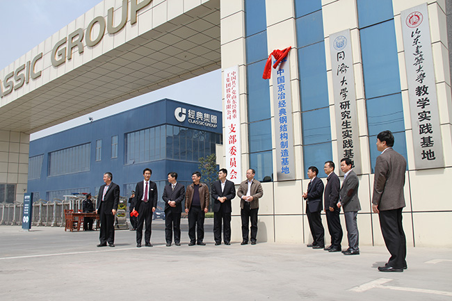 4月17日上午,經(jīng)典集團舉辦中國京冶經(jīng)典鋼結(jié)構(gòu)制造基地揭牌儀式。中國鋼結(jié)構(gòu)協(xié)會秘書長侯兆新,兗州區(qū)委常委、工業(yè)園區(qū)黨工委副書記、管委會副主任唐軍共同為基地揭牌。中國京冶工程技術(shù)有限公司鋼結(jié)構(gòu)事業(yè)部常務副總經(jīng)理常好誦,副總經(jīng)理桂宇飛,中國鋼結(jié)構(gòu)協(xié)會副秘書長李寧,行業(yè)事務部部長戴長河,經(jīng)典集團董事長苗樹文,總經(jīng)理杜福生,生產(chǎn)總經(jīng)理王忠策,工會主席高建國,企劃部經(jīng)理史振華等參加了揭牌儀式。