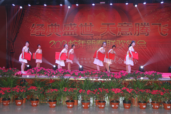 為了迎接2013年新春佳節(jié),給公司全體員工及家人們營(yíng)造歡樂(lè)愉快的節(jié)日氣氛,2月6日,由經(jīng)典集團(tuán)公司主辦的主題為2013“經(jīng)典盛世 天意騰飛”新春年會(huì),于集團(tuán)公司宴會(huì)廳熱烈舉行。公司各級(jí)領(lǐng)導(dǎo)、全體員工及員工家屬近千人共同參加了本次年會(huì)。