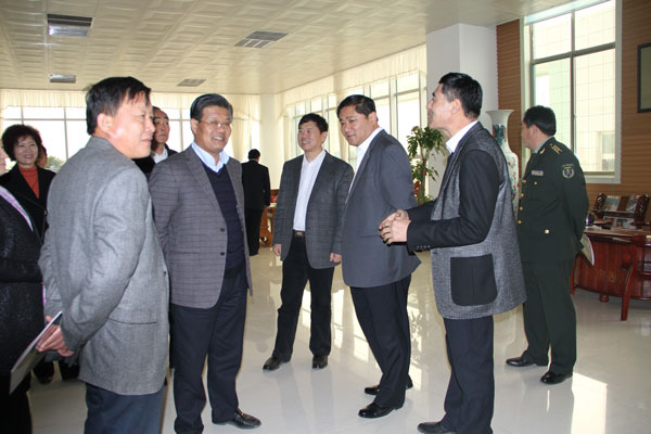 集團公司董事長陪同市領(lǐng)導(dǎo)及科學(xué)發(fā)展觀工作組領(lǐng)導(dǎo)參觀生產(chǎn)車間