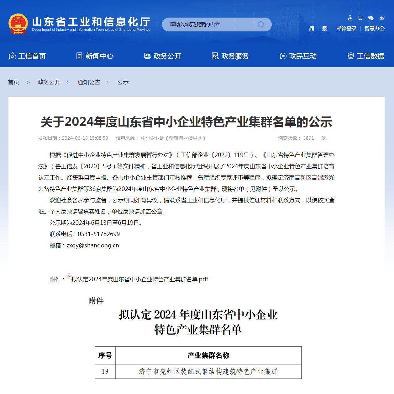 近日,山東省工業(yè)和信息化廳公布了2024年度山東省特色產(chǎn)業(yè)集群公示名單,全省共36家集群入圍。以經(jīng)典重工集團(tuán)股份有限公司為主體的濟(jì)寧市兗州區(qū)裝配式鋼結(jié)構(gòu)建筑特色產(chǎn)業(yè)集群成功入選。