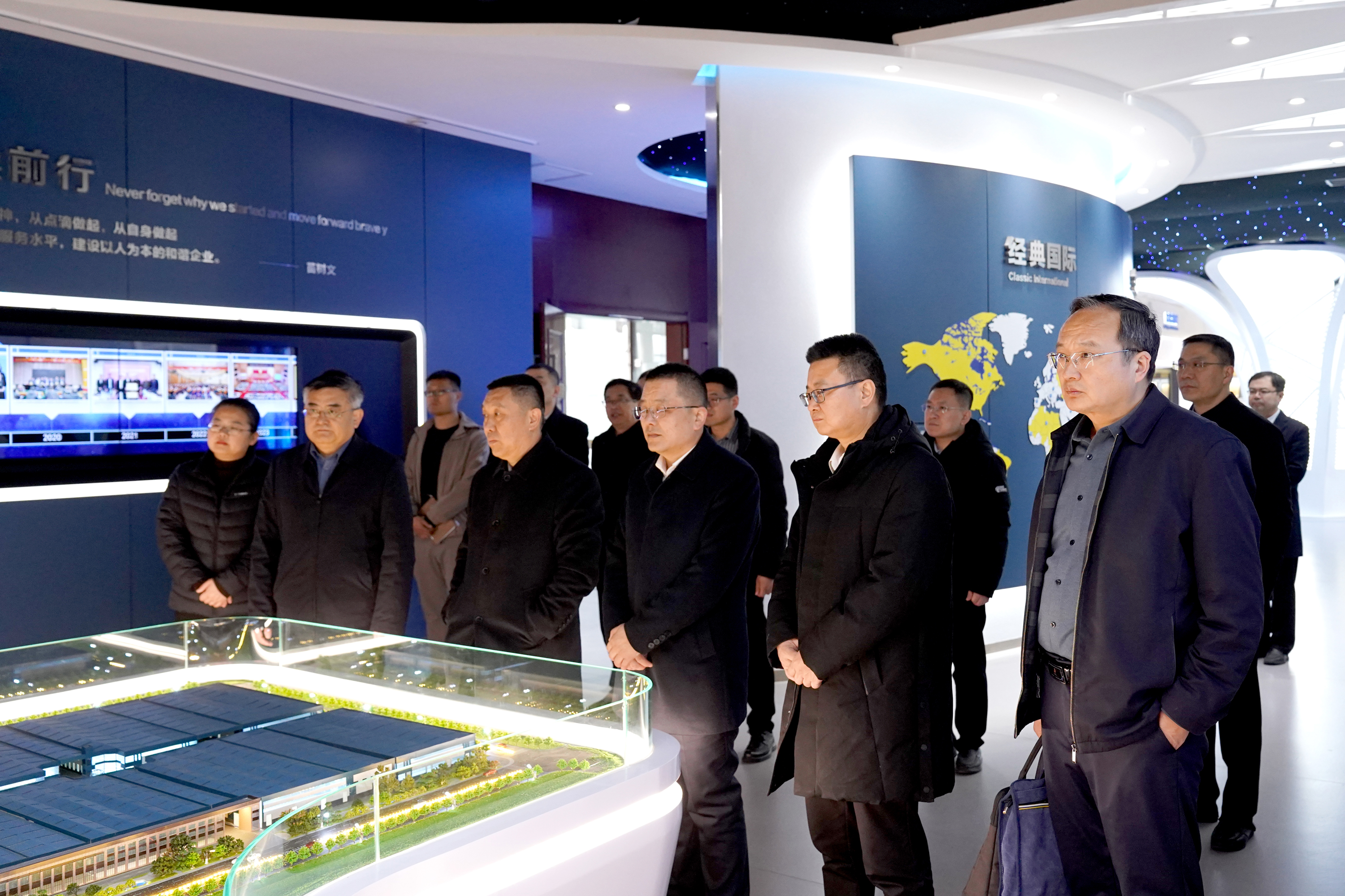 在集團文化展館,史振華董事長對濟寧學院領導的到來表示熱烈歡迎。仲紅波書記一行聽取了企業(yè)的發(fā)展歷程、文化建設、鋼結構行業(yè)發(fā)展有關介紹,了解了企業(yè)的科技創(chuàng)新、產(chǎn)學研合作、人才引進、科研平臺建設等情況。