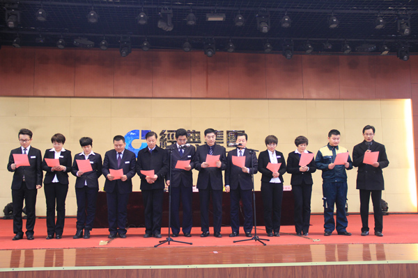 2月9日上午,經(jīng)典集團(tuán)在職工宴會(huì)中心隆重召開(kāi)2017年誓師動(dòng)員暨管理層承諾宣誓大會(huì),總結(jié)2016年企業(yè)的發(fā)展情況,安排部署2017年重點(diǎn)工作任務(wù),進(jìn)一步鼓舞斗志,強(qiáng)化舉措,銳意進(jìn)取,拼搏實(shí)干,推進(jìn)集團(tuán)公司科學(xué)發(fā)展、跨越發(fā)展。集團(tuán)董事會(huì)、各子公司負(fù)責(zé)人、各部門負(fù)責(zé)人、項(xiàng)目經(jīng)理代表、施工隊(duì)長(zhǎng)代表、制造部全體職工近1000人參加會(huì)議。