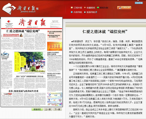 一個(gè)以經(jīng)營(yíng)發(fā)展為頭等大事的工業(yè)企業(yè),緣何對(duì)傳統(tǒng)文化和道德講堂“情有獨(dú)鐘”?“我們相信仁愛(ài)之德會(huì)讓企業(yè)獲得厚報(bào)。”集團(tuán)董事長(zhǎng)苗樹(shù)文說(shuō)。