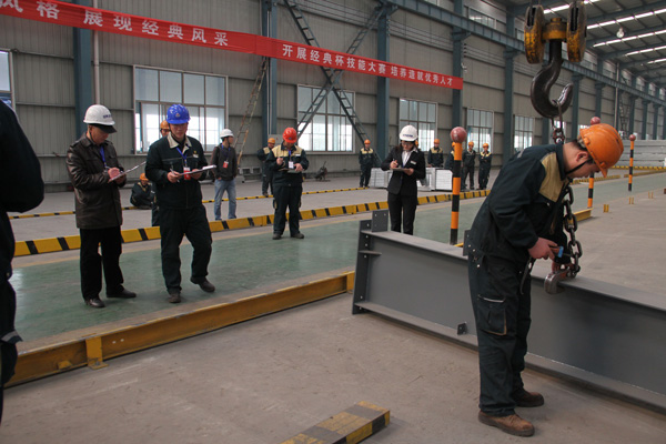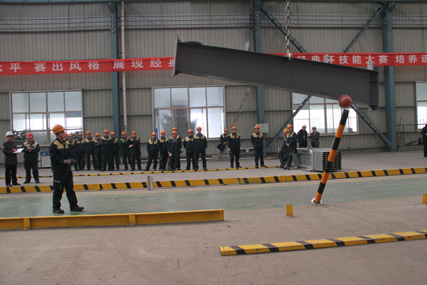 比賽在集團(tuán)公司輕鋼車間進(jìn)行。比賽活動(dòng)將理論學(xué)習(xí)和實(shí)踐操作相結(jié)合,就安全知識(shí)的理解、吊車性能的掌握、實(shí)際吊裝操作三項(xiàng)內(nèi)容進(jìn)行了競(jìng)賽。實(shí)際操作中設(shè)計(jì)了起吊鋼構(gòu)件撞球動(dòng)作,要求在規(guī)定的時(shí)間內(nèi)準(zhǔn)確完成技術(shù)動(dòng)作。經(jīng)過(guò)緊張而激烈的比賽和成績(jī)綜合評(píng)比,烤梁班組的馮勇獲得起重機(jī)技能比賽第一名,門(mén)焊機(jī)班組李寶光、烤梁班組的張世凱分別獲得起重機(jī)技能比賽第二名;組立機(jī)班組黃元德、拼裝班組孔祥文、史保健分別獲得起重機(jī)技能比賽第三名,并授予“青年崗位技術(shù)能手”榮譽(yù)稱號(hào);姜?jiǎng)倮?/SPAN>、顧凱、李小明、李慶分別獲得起重機(jī)技能比賽優(yōu)秀獎(jiǎng),并授予“技能操作優(yōu)勝者”榮譽(yù)稱號(hào)。