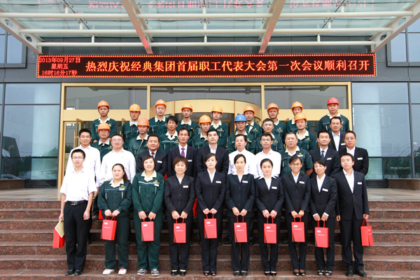 9月27日經(jīng)典集團首屆職工代表大會第一次會議在集團會議中心召開,集團公司董事長苗樹文,總經(jīng)理杜福生,工會主席高建國等工會領導及車間后勤職工代表35人參加了會議。