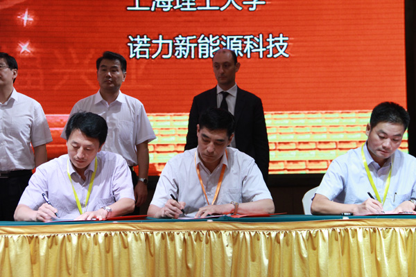經(jīng)典集團(tuán)董事長(zhǎng)苗樹(shù)文(中間)上海理工大學(xué)食品與醫(yī)療器械學(xué)院院長(zhǎng)劉寶林(左一)共同出席首輪簽約儀式